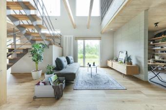 ~梁・無垢床が標準で、自然素材に包まれた自然を身近に感じられる家です。